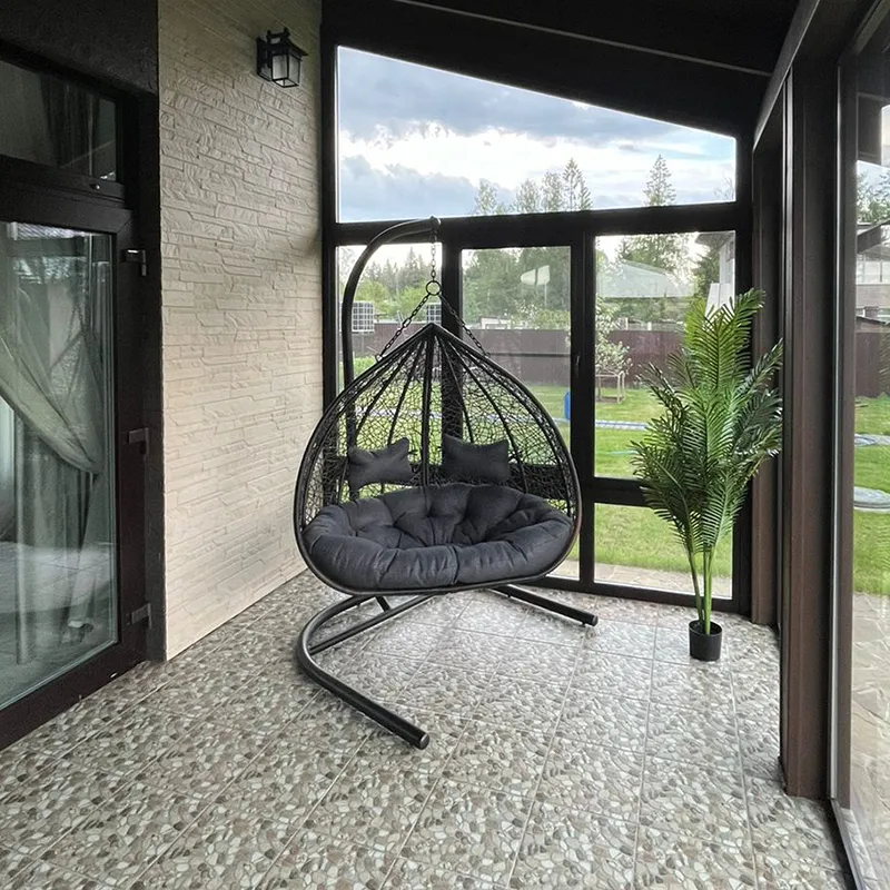 Форма кресла-кокона как будто заимствована у природы – от птичьего гнезда до бутона. Внутри – мягкие подушки, снаружи – ажурная оплётка, которую хочется трогать руками. Сочетание уюта и визуальной лёгкости делает такие кресла настоящими звёздами и садов, и интерьеров.