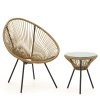 Комплект «Акапулько» – круглый столик с креслом на чёрном каркасе – станет незаменимым аксессуаром в любом интерьере. Он идеально подойдёт для организации зоны отдыха как внутри помещения, так и на открытом воздухе. Изделия выполнены из качественных и практичных материалов, устойчивых к различным атмосферным и погодным условиям, поэтому не выгорает и не разрушается. Идеальный вариант для отдыха на природе, в саду, на террасе или балконе.