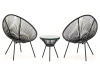 Комплект «Акапулько» – круглый столик и два кресла на чёрном каркасе – станет незаменимым аксессуаром в любом интерьере. Он идеально подойдёт для организации зоны отдыха как внутри помещения, так и на открытом воздухе. Изделия выполнены из качественных и практичных материалов, устойчивых к различным атмосферным и погодным условиям, поэтому не выгорает и не разрушается. Идеальный вариант для отдыха на природе, в саду, на террасе или балконе.