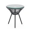 Форма и материалы стола отсылают к эстетике одноимённого кресла и дивана: визуально лёгкий, но устойчивый, он идеально вписывается в коллекцию мебели «Акапулько». Металлическое основание, выполненное в виде лучеобразных спиц и ротанга, перекликается с узнаваемыми линиями кресла, создавая целостный образ. Благодаря круглой стеклянной столешнице стол выглядит невесомо и визуально не утяжеляет пространство.