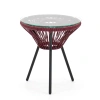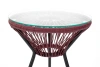 Форма и материалы стола отсылают к эстетике одноимённого кресла и дивана: визуально лёгкий, но устойчивый, он идеально вписывается в коллекцию мебели «Акапулько». Металлическое основание, выполненное в виде лучеобразных спиц и ротанга, перекликается с узнаваемыми линиями кресла, создавая целостный образ. Благодаря круглой стеклянной столешнице стол выглядит невесомо и визуально не утяжеляет пространство.