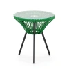 Форма и материалы стола отсылают к эстетике одноимённого кресла и дивана: визуально лёгкий, но устойчивый, он идеально вписывается в коллекцию мебели «Акапулько». Металлическое основание, выполненное в виде лучеобразных спиц и ротанга, перекликается с узнаваемыми линиями кресла, создавая целостный образ. Благодаря круглой стеклянной столешнице стол выглядит невесомо и визуально не утяжеляет пространство.