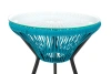 Форма и материалы стола отсылают к эстетике одноимённого кресла и дивана: визуально лёгкий, но устойчивый, он идеально вписывается в коллекцию мебели «Акапулько». Металлическое основание, выполненное в виде лучеобразных спиц и ротанга, перекликается с узнаваемыми линиями кресла, создавая целостный образ. Благодаря круглой стеклянной столешнице стол выглядит невесомо и визуально не утяжеляет пространство.