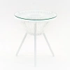 Форма и материалы стола отсылают к эстетике одноимённого кресла и дивана: визуально лёгкий, но устойчивый, он идеально вписывается в коллекцию мебели «Акапулько». Металлическое основание, выполненное в виде лучеобразных спиц и ротанга, перекликается с узнаваемыми линиями кресла, создавая целостный образ. Благодаря круглой стеклянной столешнице стол выглядит невесомо и визуально не утяжеляет пространство.
