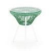 Форма и материалы стола отсылают к эстетике одноимённого кресла и дивана: визуально лёгкий, но устойчивый, он идеально вписывается в коллекцию мебели «Акапулько». Металлическое основание, выполненное в виде лучеобразных спиц и ротанга, перекликается с узнаваемыми линиями кресла, создавая целостный образ. Благодаря круглой стеклянной столешнице стол выглядит невесомо и визуально не утяжеляет пространство.