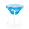 Форма и материалы стола отсылают к эстетике одноимённого кресла и дивана: визуально лёгкий, но устойчивый, он идеально вписывается в коллекцию мебели «Акапулько». Металлическое основание, выполненное в виде лучеобразных спиц и ротанга, перекликается с узнаваемыми линиями кресла, создавая целостный образ. Благодаря круглой стеклянной столешнице стол выглядит невесомо и визуально не утяжеляет пространство.