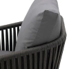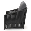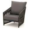 Ручное плетение из роупа (текстильного шнура) flat придаёт изделию неповторимый текстурный рисунок и гарантирует долговечность в условиях длительной эксплуатации. Материал устойчив к влаге и ультрафиолету, благодаря чему кресло не теряет цвет и форму даже после долгого времени на открытом воздухе.