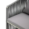 Благодаря алюминиевому каркасу, кресло лёгкое и одновременно надёжное, оно не боится перепадов температур, сохраняя первоначальный привлекательный вид на долгие годы. Оплётка из прочного роупа (текстильного шнура) flat придаёт креслу стильный и современный вид, а также обеспечивает дополнительную вентиляцию – в жаркий день в нём будет приятно сидеть.