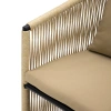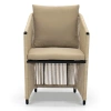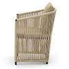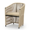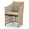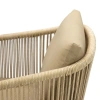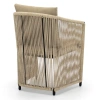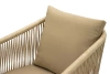 Благодаря алюминиевому каркасу, кресло лёгкое и одновременно надёжное, оно не боится перепадов температур, сохраняя первоначальный привлекательный вид на долгие годы. Оплётка из прочного роупа (текстильного шнура) line придаёт креслу стильный и современный вид, а также обеспечивает дополнительную вентиляцию – в жаркий день в нём будет приятно сидеть.