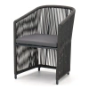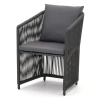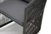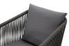 Благодаря алюминиевому каркасу, кресло лёгкое и одновременно надёжное, оно не боится перепадов температур, сохраняя первоначальный привлекательный вид на долгие годы. Оплётка из прочного роупа (текстильного шнура) line придаёт креслу стильный и современный вид, а также обеспечивает дополнительную вентиляцию – в жаркий день в нём будет приятно сидеть.