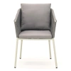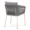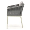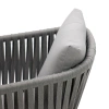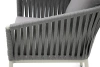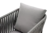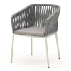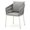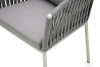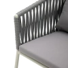 Каркас изготовлен из алюминия – лёгкого, прочного и не подверженного коррозии материала. Ручная оплётка из роупа (текстильного шнура) flat придаёт креслу выразительную фактуру, хорошо держит форму и не боится влаги – даже при интенсивном использовании материал не растягивается и не выцветает.