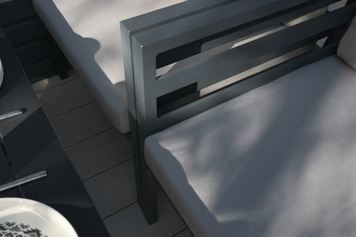 Велтон – новое воплощение современного стиля – изысканная, но сдержанная в деталях, коллекция мебели из алюминия. Чёткие линии с элегантным сочетанием мягких подушек – исключительная особенность этой серии, которая включает пуфы, столы и столики, кресла, диваны и комплекты для отдыха.